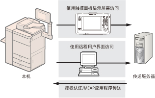 根据系统可选配件/MEAP应用程序,可能需要进行授权注册。 使用SMS(Service Management Service)执行以下针对MEAP应用程序的管理操作 (请参阅“MEAP”): 检查安装在本机的MEAP应用程序 检查MEAP应用程序使用的硬盘空间 为之前安装的MEAP应用程序添加授权 已选择Default Authentication作为默认的登录服务。有关选择和设置登录服务的说明,请参阅 “登录服务选择”。根据安装的系统可选配件/MEAP应用程序,可以从以下URL下载系统可选配件/MEAP应用程序的手册或相关软件。 http://canon.com/fau/downloads 下载系统可选配件/MEAP应用程序的手册和相关软件时,请准备包含于本包装的授权存取号证书。 如果没有手册可以下载,请参阅本手册的功能介绍。 多个用户不能同时使用“注册/更新软件”。 如果其他用户已登录到SMS(Service Management Service),则不能从“远程用户界面”使用“注册/更新软件”功能。 如果执行以下一种操作,则在一段特定时间内无法从“远程用户界面”使用“注册/更新软件”: 设置了SMS的Remote Login Service时,没有按[到门户]或[注销]就关闭网络浏览器。 未设置SMS的Remote Login Service时,没有按[到门户]就关闭网络浏览器。 没有按SMS的[Log Out from SMS](从SMS注销)、[To Remote UI](到远程用户界面)或[Log Out](注销)就关闭了网络浏览器。 |
