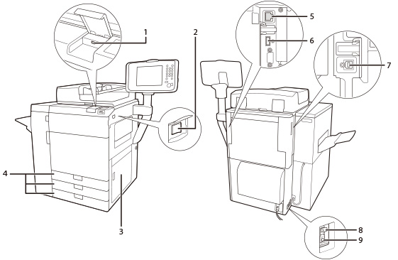 2. | 主电源开关 将开关按到“I”侧可以打开电源。 (请参阅“操作面板部件及其功能”) |
