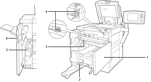 5. | 废粉收集容器 此处收集废墨粉。(请参阅“更换废粉收集容器”) |