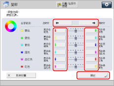 如果选择的按键没有存储色彩平衡设置,则[确定]变灰并且无法按下。可以选择另一个存储有色彩平衡设置的键,或按[取消]。