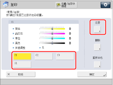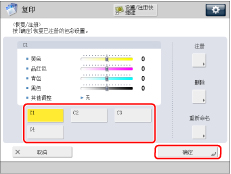 如果没有输入任何字符就按[确定],按键名称恢复为当前名称(默认为C1到C4)。 |