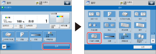 如果[单面 双面]与[不同尺寸原稿]一起使用,则复印件将作为单面复印件打印在各自相应尺寸的纸张上。 |