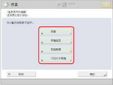 “基本传真功能屏幕”上显示四个选项快捷键。默认显示[浓度]、[原稿类型]、[双面原稿]和[不同尺寸原稿]。这些快捷键可以更改为常用的功能。