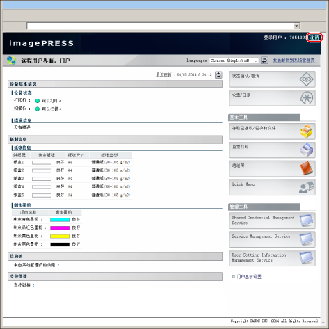 本节介绍步骤时假定本机的设置均为默认设置。如果设置了“部门识别码管理”或SSO-H认证,每次登录输入必要的条目。 有关使用登录服务的说明,请参阅“MEAP”。如果没有设置登录服务,则不会显示“登录”屏幕。 有关“远程用户界面”的系统要求和启动“远程用户界面”的预备步骤的信息,请参阅“系统要求”和“启动远程用户界面之前”。 |