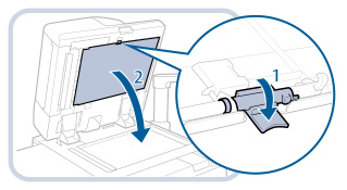 关闭盖板和输稿器时,请小心不要夹住手指,否则可能导致人身伤害。 关闭输稿器时请注意,从稿台玻璃发出的光可能会很亮。 |