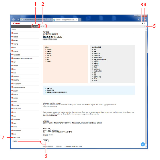 单击可以显示目录区域或搜索区域。单击可以在目录和搜索显示之间切换。在显示目录时,每次单击