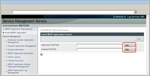 为了安装MEAP应用程序,必须具备有效的授权文件。如果应用程序带有“授权存取号”,则必须通过以下URL访问License Management System以获取授权文件: http://www.canon.com/lms/license/ 按照在线说明创建和下载授权文件。为了完成授权生成过程,必须提供可用的“授权存取号”和MEAP设备序列号(显示在SMS屏幕左上方)。 如果应用程序不带有“授权存取号”,则授权文件将由MEAP应用程序供货商提供。有关详细信息,请参阅应用程序随附的手册。 |