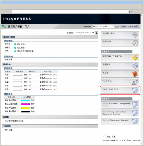 Local Device Authentication的管理员默认用户名为“Administrator”,默认密码为“password”(区分大小写)。 要从“远程用户界面”的门户页面登录,将“设置/注册”的[管理设置]中的[授权/其他]的[远程用户界面]设置为“打开”。(请参阅“启动远程用户界面之前”) |