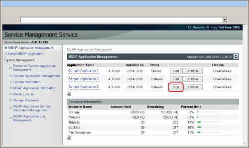 如果未安装所需授权文件,则无法通过单击[Start](启动)启动应用程序。 当内存、线程、套接字或文件描述符所需的资源已耗尽时,即使单击[Start](启动)也不会启动应用程序。 |