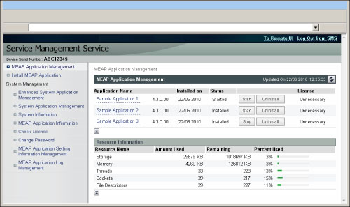 [MEAP Application Information] (MEAP应用程序信息) | 显示本机安装的应用程序的详细信息。 |