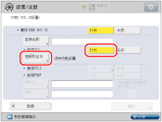 要对登录用户以外的用户进行IEEE 802.1X认证:在[用户名]中输入用户名,在[密码]中输入指定的用户密码。在“确认”屏幕中,输入相同的密码以确认密码→按[确定]。
