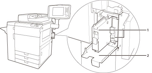 “可移动硬盘存储器”可以容纳硬盘。不使用本机时,可以取出硬盘并妥善存放。将“硬盘数据加密和镜像组件”与“可移动硬盘存储器”一起使用时,可以将相同数据存储在两个硬盘上,并可以加密数据并妥善存放硬盘。