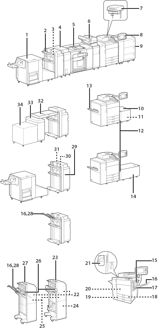14. | 长纸大容量侧纸仓 – A “长纸大容量侧纸仓 – A”最多可以容纳3,500张普通纸(80 g/m2)或1,000张长条形纸张(80 g/m2)。 |