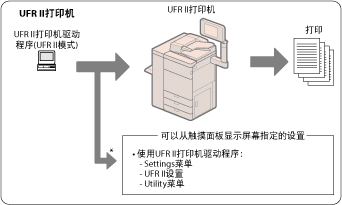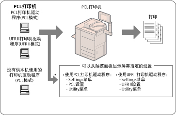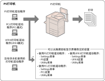 UFR II、PCL、PS和直接打印打印机操作的差异性