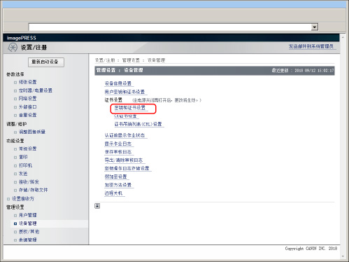单击[设置/注册]→<管理设置>的[设备管理]。