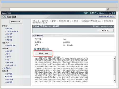 如果要保存CSR数据到文件中,单击[存储到文件中]并指定保存位置。
