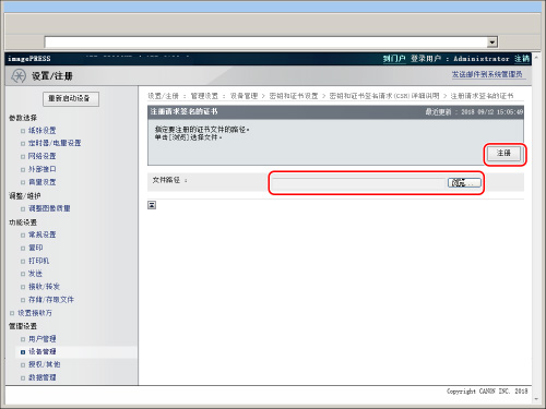 单击[浏览……],指定要注册的文件(证书),并单击[注册]。