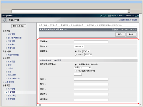 可以在本机上生成密钥和CSR。也可以在屏幕上显示CSR数据并将其以文件的形式导出。