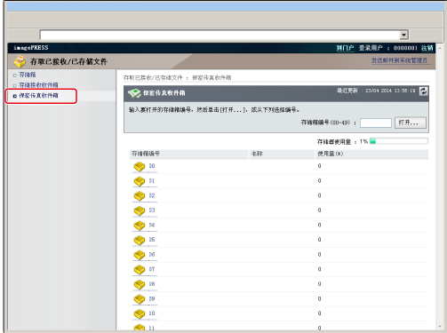 还可通过在<存储箱编号(00-49)>旁输入所需收件箱的编号进行选择→单击[打开...]。