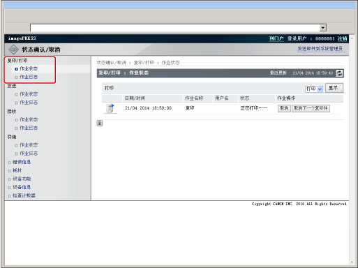 复印: | 显示复印作业日志。 |