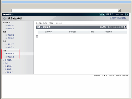 作业日志中显示最近的100个作业。 将作业日志保存为CSV格式时显示的对话框可能根据网络浏览器的制造商和版本而有所差异。 |