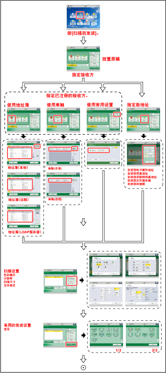 为了将扫描文档发送至电子邮件地址、互联网传真地址或文件服务器,必须指定网络设置。(请参阅“电子邮件/互联网传真常规通信设置”) |