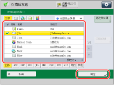 要取消选定的接收方,再次选择该接收方。 如果只选择一个接收方,按 (启动)可以从“地址簿”屏幕发送。 |