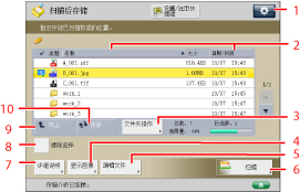 2 | [名称] 按下可以按名称的升序或降序排序文件。 [日期/时间] 按下可以按日期/时间的升序或降序排序文件。 |