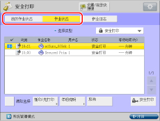 如果未显示打印作业,请按“设置/注册”的[功能设置]中的[限制打印机作业]并检查该设置。(请参阅“限制打印机作业”。) |