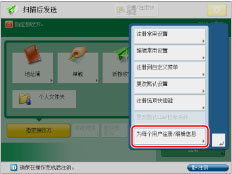 可以在[扫描后发送]“基本功能”屏幕、[传真]“基本功能”屏幕、[存取已存储文件]“发送”屏幕和[传真/互联网传真收件箱]“发送”屏幕上的[ ]中为每个用户注册认证信息。 |