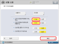 只有本机具备“打印”功能和“远程扫描”功能时,才启用<允许识别码未知的打印机作业>和<允许识别码未知的远程扫描作业>设置。 |
