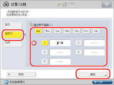 如果选择[指定日],选择一周中的某天([Sun]到[Sat])→选择一个数字([1]到[5])。