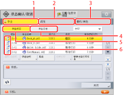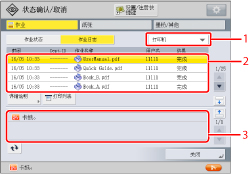 1 | 作业类型下拉列表 按下可以按照作业类型对显示的作业进行排序。选择以下作业类型。 打印 复印 发送 发送(传真) 转发 存储 |
