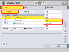 [重新发送]: | 重新发送作业。如果选择的作业具有多个接收方,按[多路发送列表]→选择要向其重新发送作业的接收方→按[重新发送]。 |