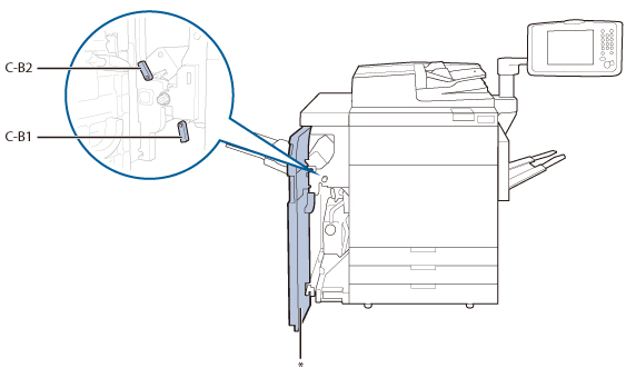本节介绍如何清除本机左侧部件内发生的卡纸。下图指示本机左侧部件的位置。