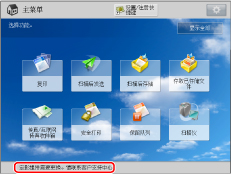 如果因错误限制了目标功能,使用“主菜单”屏幕上方的快捷键或使用“自定义菜单”时,此功能不可用。 限制了“打印”功能时,[取出墨粉盒]不可用。 |