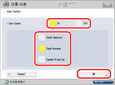 为[Use Cache](使用缓存)选择[On](打开)→选择缓存类型→按[OK](确定)。