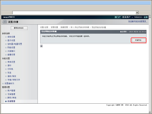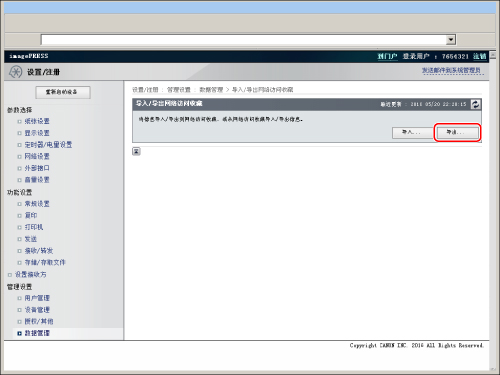 单击[设置/注册]→<管理设置>选择[数据管理]。