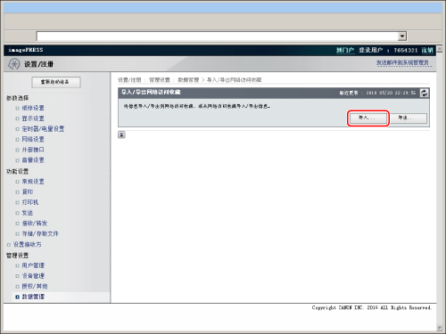 单击<逐个导入/导出>的[网络访问收藏]→[导入...]。