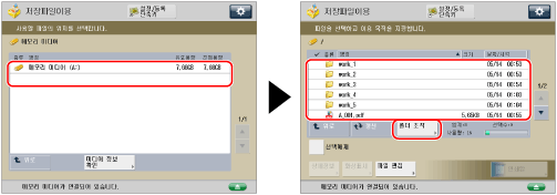 → [저장파일 이용] → [메모리 미디어]를 누릅니다.