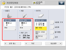 마무리 크기별로 지정 | 세로 재단 | 138.0 mm ~ 216.0 mm | 257.0 mm ~ 297.0 mm |