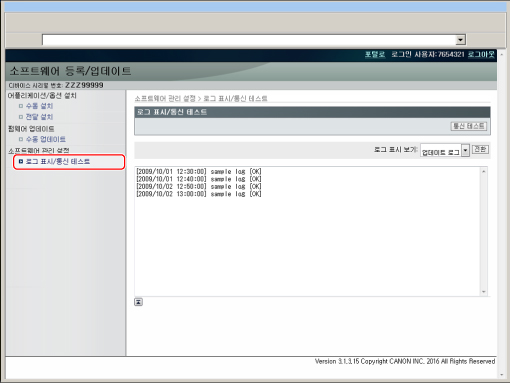 [소프트웨어 관리 설정] → [로그 표시 선택] → [업데이트 로그 표시]를 누릅니다.