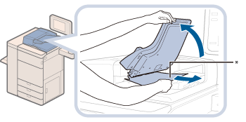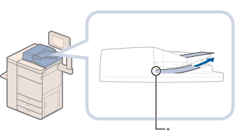 원고 공급 트레이의 사이 안으로 클립이나 기타 물체를 떨어뜨리지 마십시오. 원고가 스캔되는 동안에 원고를 추가하거나 제거하지 마십시오. 스캔이 완료되면 용지가 걸리지 않도록 원고 배지 영역에서 원고를 제거해 주십시오. (Duplex Color Image Reader Unit-M을 사용하는 경우, 스캔이 완료되었을 때 원고 배지 표시등이 한동안 깜빡입니다.) ![]() * 원고 배지 영역 원고 배지 영역에 물체를 올려 놓지 마십시오. 이 경우 원고가 손상될 수 있습니다. |
