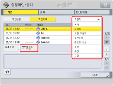 드롭다운 리스트를 누르고 → 인쇄하려는 작업 종류를 선택하고 → [리스트 인쇄]를 누릅니다.