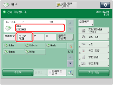 → [팩스]를 누르고 → 원하는 수신인을 지정합니다.