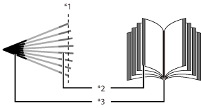 *3 가장 바깥의 페이지 안쪽 여백은 가운데 페이지의 안쪽 여백보다 넓게 설정됩니다. 각 페이지의 이미지 위치는 소책자의 가장 바깥 페이지와 가장 안쪽 페이지 사이의 이동 폭을 계산하여 조정됩니다.