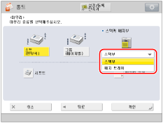 [스택커]를 선택한 경우 각 작업의 출력 위치를 [스택부] 또는 [배지 트레이]로 변경할 수 있습니다. |