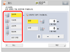 0 이외의 값을 입력하는 경우, [±]를 눌러 플러스 및 마이너스 여백 폭 사이를 전환할 수 있습니다.