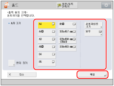 [상세정보]를 누르면 선택된 용지의 상세 정보가 표시됩니다. 를 누르면 기기 그림의 표시 여부를 전환할 수 있습니다. 자세한 내용은 "용지 목록 선택 화면의 기본 표시 변경 "을 참고하십시오. |