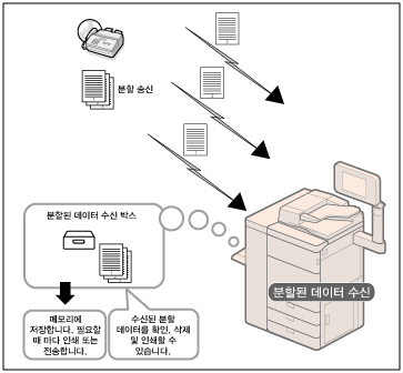 1 | [분할 리스트] 분할된 데이터의 상태를 확인하고 분할 데이터 수신 박스의 잔여 용량을 확인합니다. |